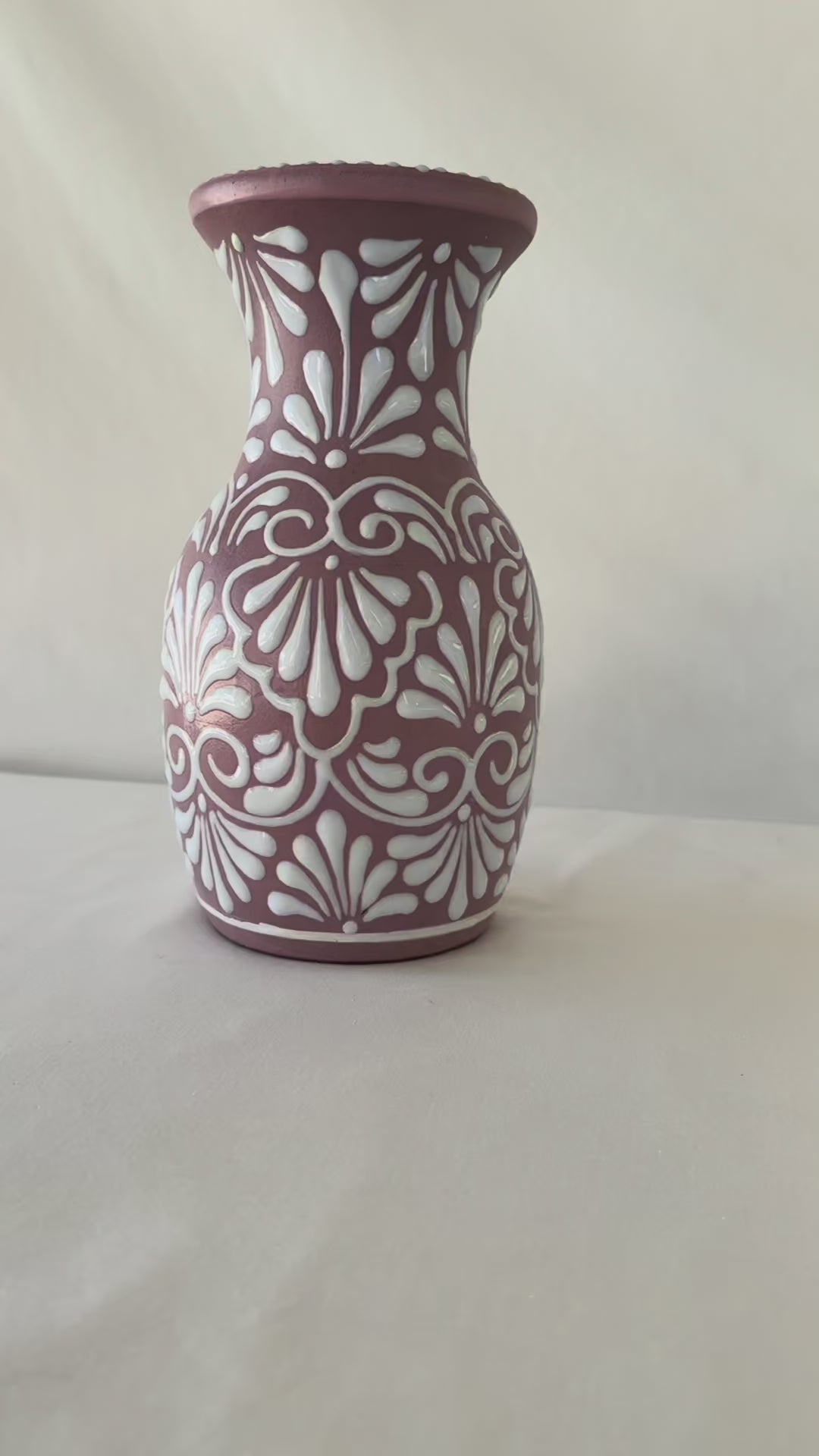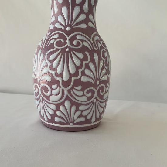 Pink sirena vase with white design. Mix design. 9 1/2" tall